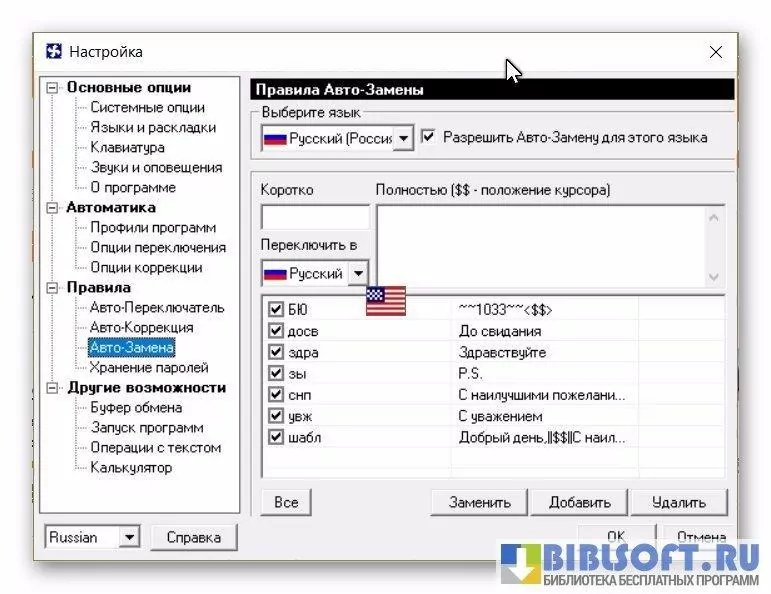 - автоматическое изменение раскладки (также поддерживается исправление фрагментов текста, набранных в неверной раскладке);