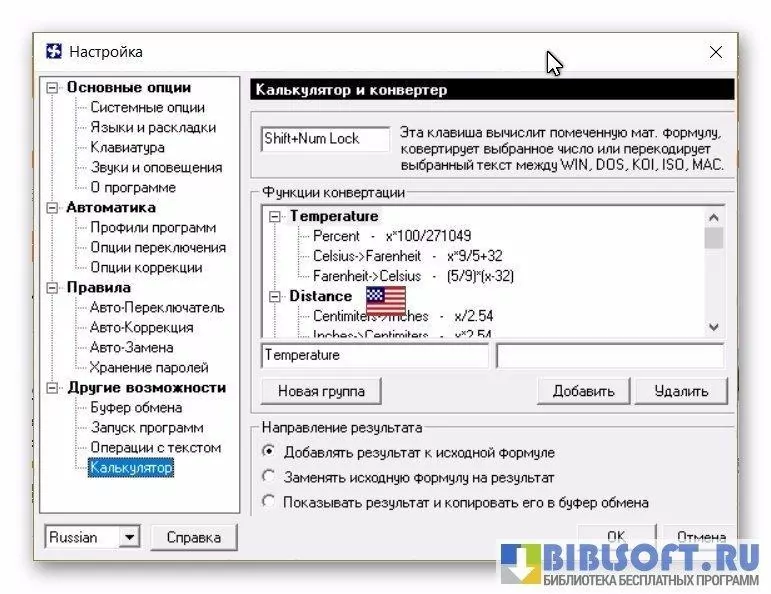 - перевод единиц измерения по заданным формулам.