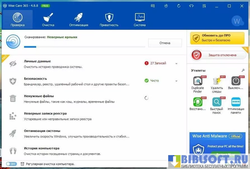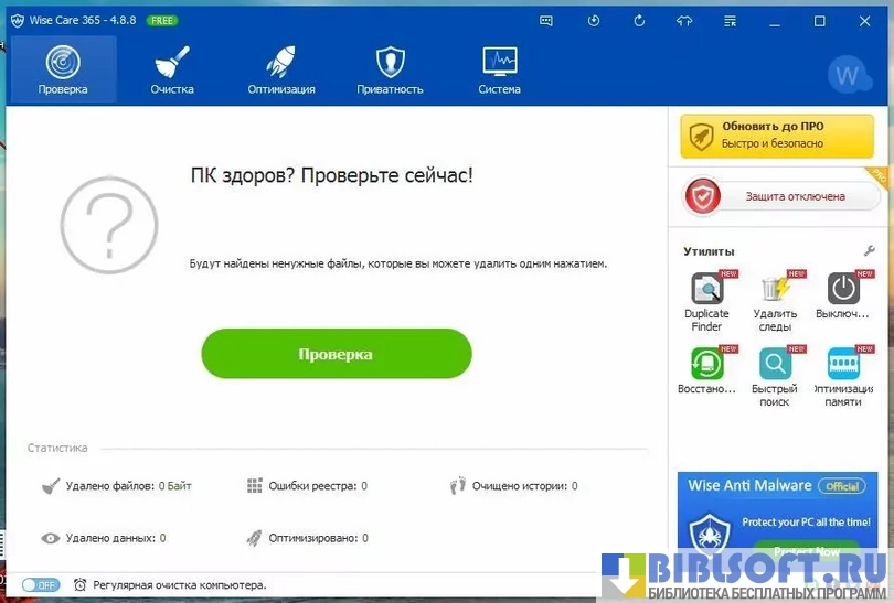 Wise Care 365 Free – многофункциональная сервисная утилита для Windows. Предназначена для оптимизации работы системы, очистки реестра от цифрового мусора и проведения дефрагментации, в т.ч. – низкоуровневой.