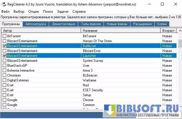 - очистка разделов и ключей реестра, принадлежащих удаленным программам;