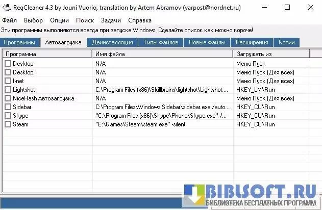 Возможности RegCleaner