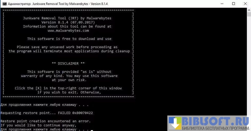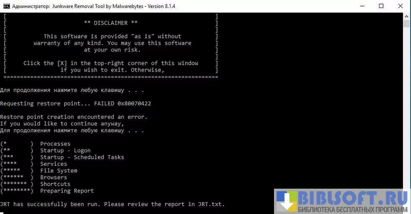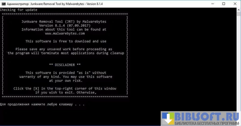 Junkware Removal Tool (JRT) – небольшая утилита от компании Malwarebytes для выявления вредоносного ПО на персональном компьютере, дальнейшей очистки системы (первичное и окончательное удаление).